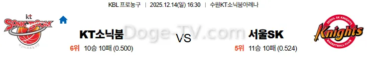 12월14일 수원KT 서울SK 국내농구 스포츠무료중계 스포츠분석