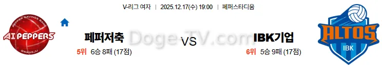 12월17일 페퍼저축은행 IBK기업은행 국내배구분석 스포츠무료중계 스포츠분석