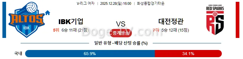 12월28일 IBK 기업은행 정관장 국내배구분석 스포츠무료중계 스포츠분석