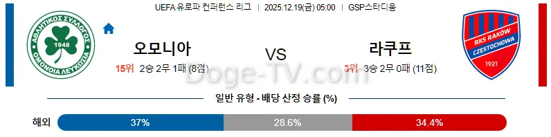 12월19일 AC 오모니아 라코브 해외축구분석 스포츠무료중계 스포츠분석