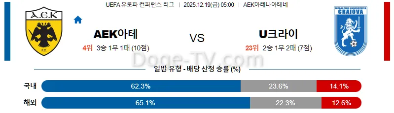 12월19일 AEK아테네 크라이오바 해외축구분석 스포츠무료중계 스포츠분석