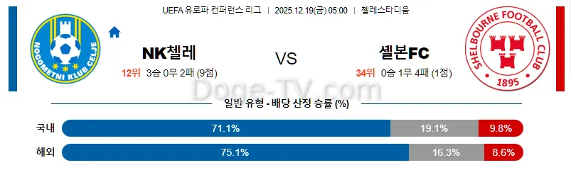 12월19일 NK 첼레 쉘본 해외축구분석 스포츠무료중계 스포츠분석