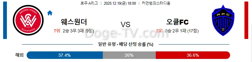 12월19일 웨스턴 시드니 원더러스 FC 오클랜드 FC 해외축구분석 스포츠무료중계 스포츠분석