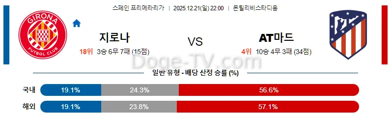 12월21일 지로나 FC AT 마드리드 스포츠무료중계 스포츠분석