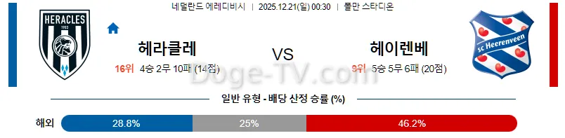 12월21일 헤라클레스 알멜로 헤이렌베인 해외축구분석 스포츠무료중계 스포츠분석