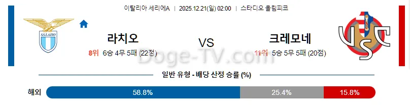 12월21일 SS 라치오 크레모네 해외축구분석 스포츠무료중계 스포츠분석
