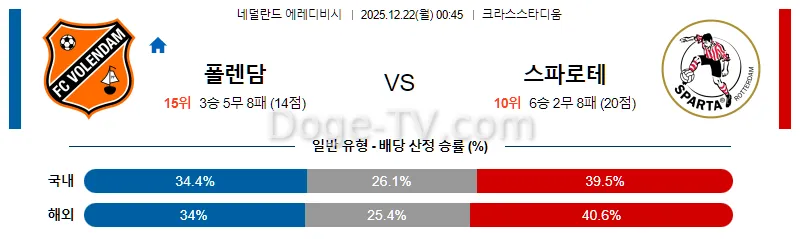12월22일 폴랜담 스파르타 로테르담 스포츠무료중계 스포츠분석