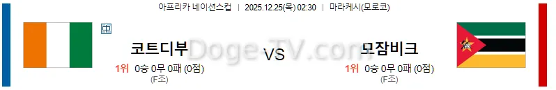 12월25일 코트디부아르 모잠비크 스포츠무료중계 스포츠분석