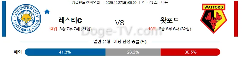 12월27일 레스터 시티 왓포드 해외축구분석 스포츠무료중계 스포츠분석