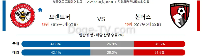 12월28일 브렌트퍼드 FC 본머스 해외축구분석 스포츠무료중계 스포츠분석