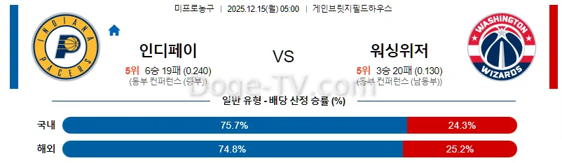 12월15일 인디애나 페이서스 워싱턴 위자드 NBA 스포츠무료중계 스포츠분석