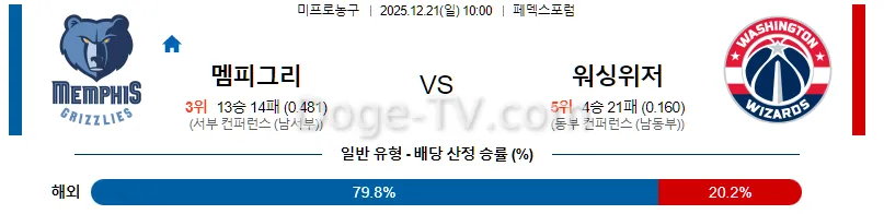 12월21일 멤피스 그리즐리즈 워싱턴 위자드 NBA분석 스포츠무료중계 스포츠분석