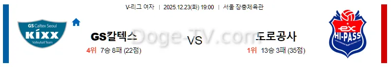 12월23일 GS 칼텍스 한국 도로공사 국내배구분석 스포츠무료중계 스포츠분석