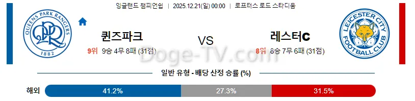 12월21일 퀸즈 파크 레인저스 레스터 시티 해외축구분석 스포츠무료중계 스포츠분석