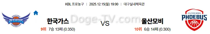 12월15일 한국가스공사 울산모비스 국내농구 스포츠무료중계 스포츠분석