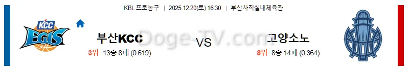 12월20일 부산 KCC 고양 소노 국내농구분석 스포츠무료중계 스포츠분석