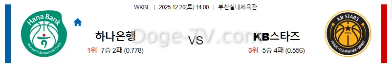 12월20일 하나은행 KB스타즈 국내농구분석 스포츠무료중계 스포츠분석