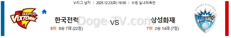 12월23일 한국전력 삼성화재 국내배구분석 스포츠무료중계 스포츠분석