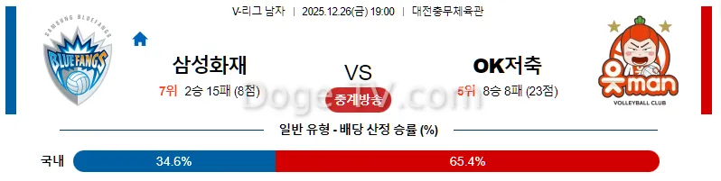12월26일 삼성화재 OK 저축은행 국내배구분석 스포츠무료중계 스포츠분석