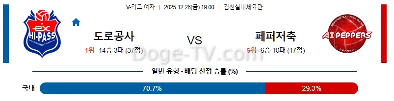 12월26일 한국 도로공사 페퍼저축은행 국내배구분석 스포츠무료중계 스포츠분석