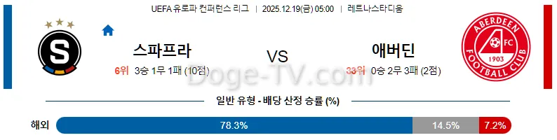 12월19일 AC 스파르타 프라하 애버딘 해외축구분석 스포츠무료중계 스포츠분석