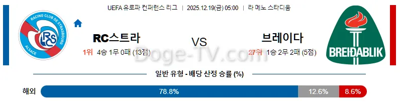 12월19일 RC 스트라스부르 브레이다블리크 해외축구분석 스포츠무료중계 스포츠분석