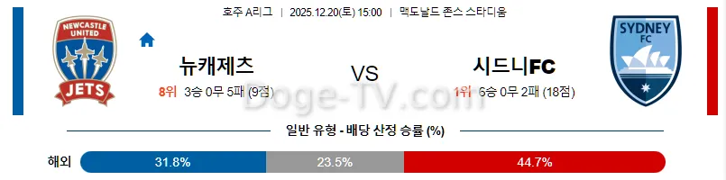 12월20일 뉴캐슬 제츠 FC 시드니 FC 해외축구분석 스포츠무료중계 스포츠분석