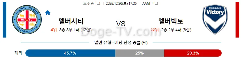 12월20일 멜버른 시티 FC 멜버른 빅토리 FC 해외축구분석 스포츠무료중계 스포츠분석