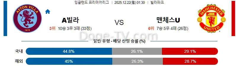 12월22일 애스턴 빌라 맨체스터 유나이티드 스포츠무료중계 스포츠분석