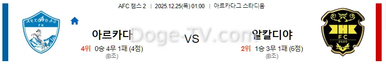 12월25일 아르카닥 알 칼리디야 스포츠무료중계 스포츠분석