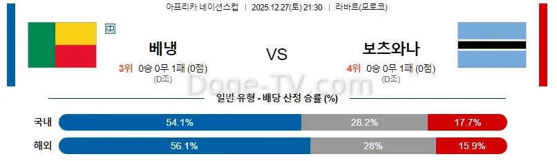 12월27일 베냉 보츠와나 해외축구분석 스포츠무료중계 스포츠분석