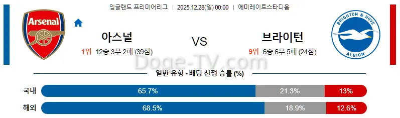 12월28일 아스널 브라이턴 & 호브 앨비언 해외축구분석 스포츠무료중계 스포츠분석