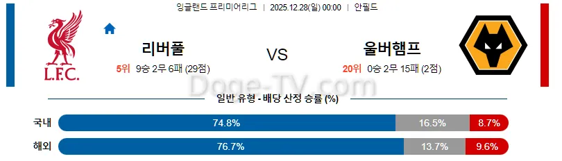 12월28일 리버풀 FC 울버햄튼 해외축구분석 스포츠무료중계 스포츠분석
