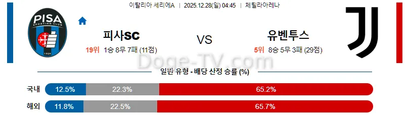 12월28일 피사SC 유벤투스 해외축구분석 스포츠무료중계 스포츠분석
