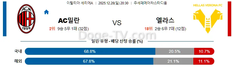 12월28일 AC 밀란 엘라스 베로나 FC 해외축구분석 스포츠무료중계 스포츠분석