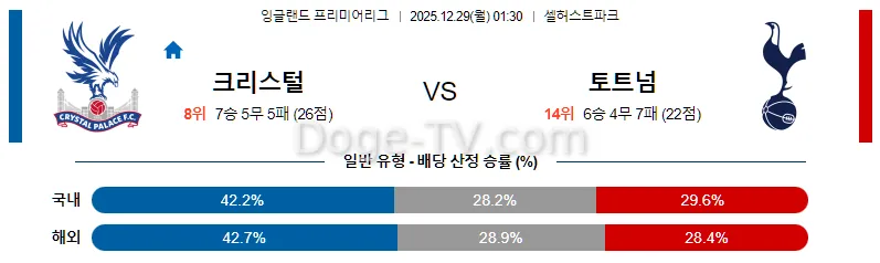 12월29일 크리스탈 팰리스 토트넘 홋스퍼 해외축구분석 스포츠무료중계 스포츠분석