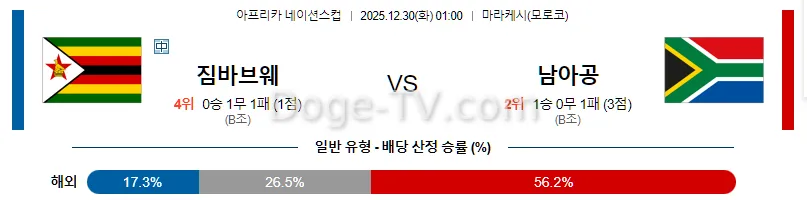 12월30일 짐바브웨 남아공 해외축구분석 스포츠무료중계 스포츠분석