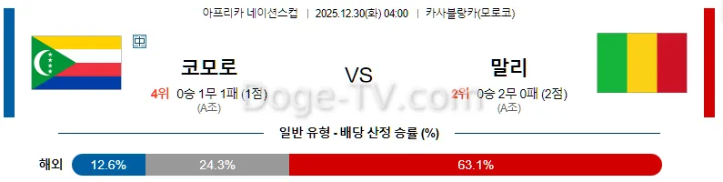 12월30일 코모로스 말리 해외축구분석 스포츠무료중계 스포츠분석