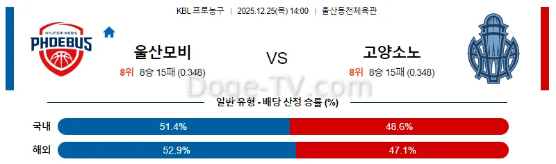 12월25일 울산 현대모비스 고양 소노 국내농구분석 스포츠무료중계 스포츠분석