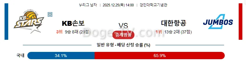 12월25일 KB 손해보험 대한항공 국내배구분석 스포츠무료중계 스포츠분석