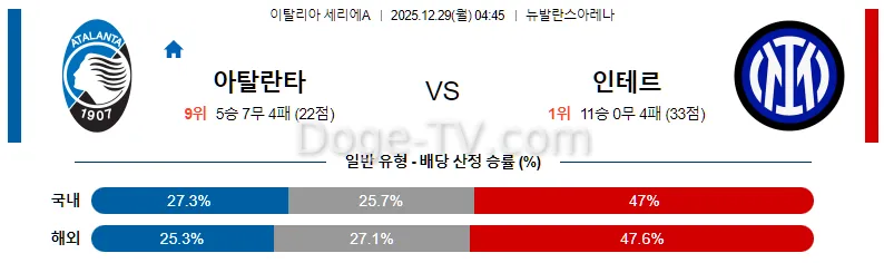 12월29일 아탈란타 BC SC 인테르 해외축구분석 스포츠무료중계 스포츠분석
